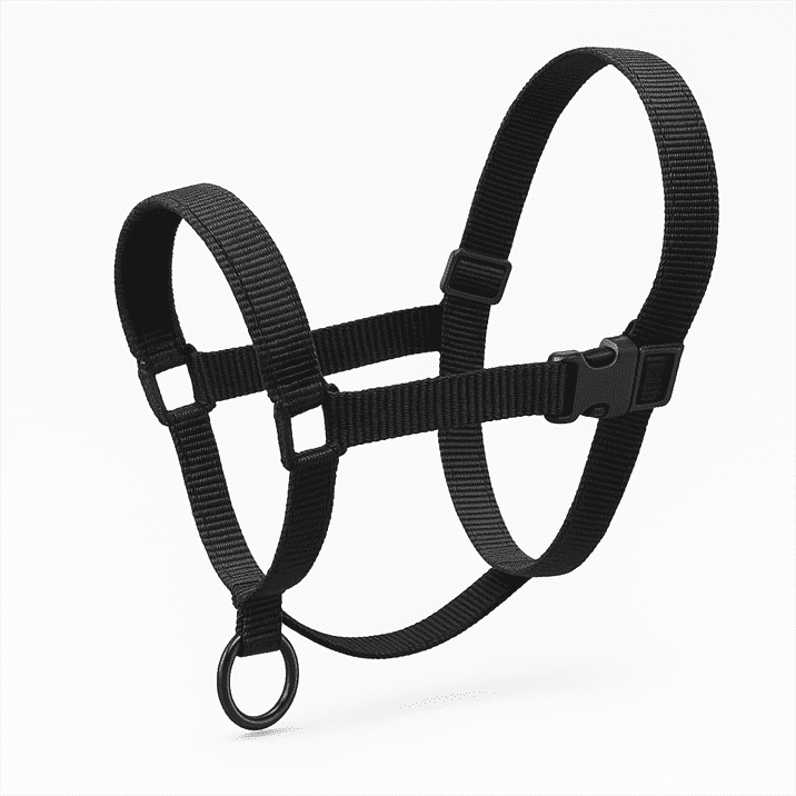Not a traditional collar, head halters loop around the muzzle and behind ears, redirecting the nose like a horse halter.